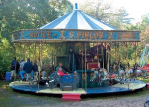 The ride is believed to date from the late 1870s, and features a set of Savage platform horses, or Dobbies. These were the fore-runner of the Gallopers (which can be ridden at Hollycombe next to the Steam Circus), a later development which saw the introduction of an additional ‘galloping’ motion compared to the Dobbies circular motion. Mr Fields Steam Circus is driven by a Savage steam centre engine and riders are entertained by an 1880s 62 key Gavioli trumpet barrel organ.