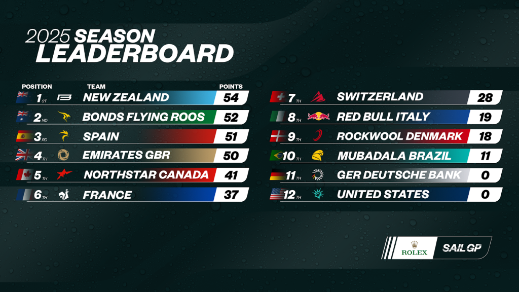 It was not to be for Dylan Fletcher’s Emirates Great Britain SailGP Team though as Peter Burling’s Black Foils cinched victory in Portsmouth, bumping New Zealand to the top of the 2025 Season leaderboard.